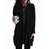Dame Mote Rund Hals Lomme Mellomlang Casual Ensfarget Langermet Topp