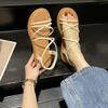 Fashion Womens Shoes 2025 Large Size Cross Cross-Shoes Flat Sandals Summer Heels Suit Female Beige Luxury New Big Without Girls