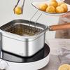 Introducing the versatile fryer, crafted from durable food-grade stainless steel for long-lasting use. This 5-in-1 multifunctional cookware is perfect for frying, steaming, cooking, baking, and straining.