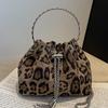 Leopard print fashion small bag spring new portable bucket bag retro chain oblique span bag
