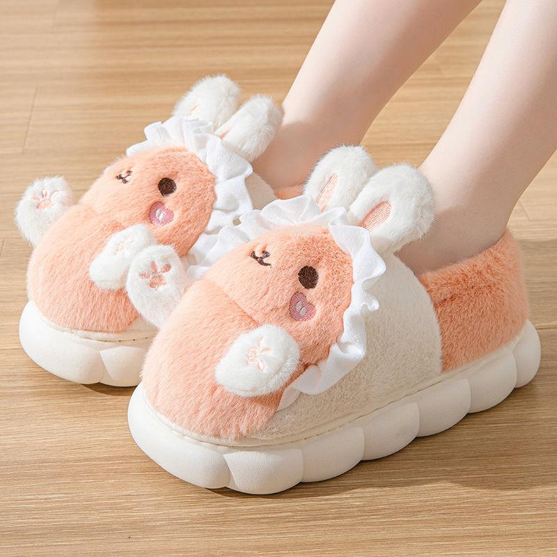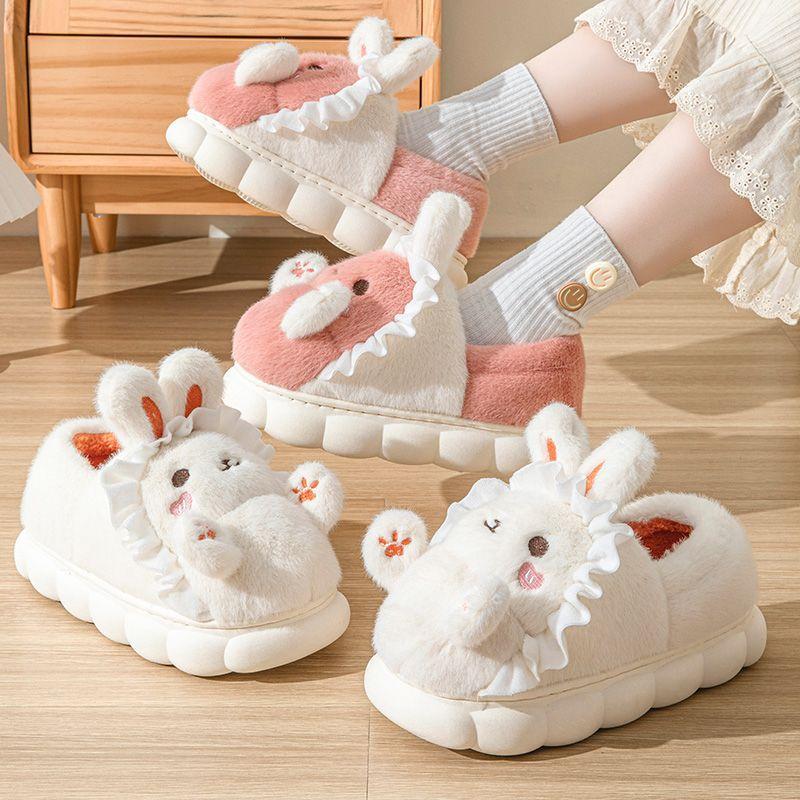 Winter Thick Cotton Slippers New Cotton Shoes for Cold Prevention and Warmth at Home Cartoon Little Rabbit Cotton Slippers