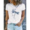 Retro Gradient Tie Dye Dragonfly Print Round Neck Women's T-shirts Casual Fashion Short Sleeved Top