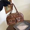 Chic PU Shoulder/Crossbody Bag with Bow & Double Pocket Details: Crafted from PU with a smooth finish, featuring a sweet bow decoration and two front pockets that add a touch of cuteness and practicality. Designed for shoulder or cross - body wear, ideal for adding a stylish touch to daily outings, work, or casual events.