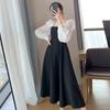 Høst Vinter Firkantet Krage Patchwork Vintage Kjole Kvinner Lantern Langermet Elegant Mote Kåpe Vestidos