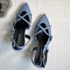 Shoes new women's summer denim blue pointed thin heel dew heel high heel fashion sandals