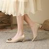 8-Shallow mouth square head single shoes women's autumn new commuting temperament thick heel square buckle high heels