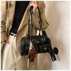 - **Detaljer om strukturert skulderveske**: Har en elegant strukturert silhuett med blank PU-finish, doble klafflommer med metallspenner og et topphåndtak, utstråler retro og stilig sjarm. Flere fargealternativer (Brun, Rosa, Sølv, Svart, Rød, Hvit) imøtekomme ulike stilpreferanser.