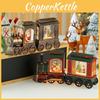 This illuminated water-filled train ornament features a musical mechanism, creating a charming holiday display. Made of durable resin with a vintage bronze finish and vibrant red-green paint. It is ideal for holiday window displays, hotel decors, or store decorations during Christmas. To preserve its beauty, wipe clean with a damp cloth regularly.
