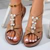 Fashion Pearl Flower Decor Bohemian Sandals Women Lightweight Flat Heels Casual Sandals Woman 2025 Summer Comfort Non Slip Beach Shoes