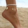 Layering Stackable Anklet For Women With Shell Starfish Beads Summer Beach Jewelry Alloy Faux Pearls Seaside Accessory