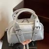 - **Structured Multi-Way Bag Details**: Features a stylish structured Boston bag silhouette with PU material, glossy finish, metallic hardware, and versatile carrying options (handheld, single-shoulder, backpack), exuding edgy and retro charm. Multiple color options (Black, Beige, Silver, Wine Red) cater to diverse style preferences.