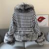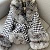 New stunner in the world imitation silver fox fur collar thousand bird plaid shawl cape imitation fur coat women