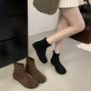 Sheepskin version~ French thick heel thin boots women's shoes 2025 new velvet bare boots retro suede Korean small short boots