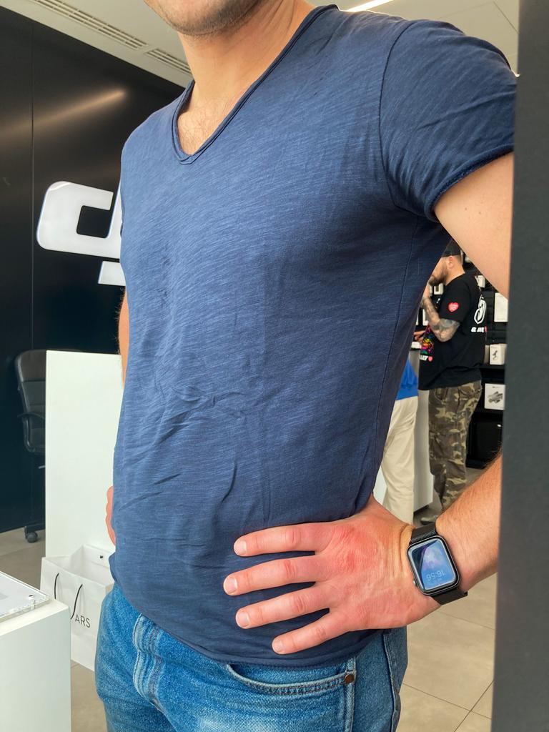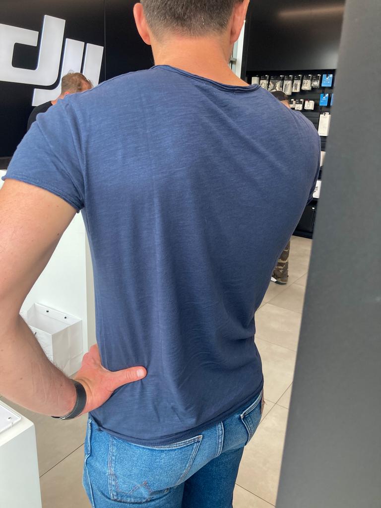Taille L, que je porte habituellement, me convient, mais XL aurait presque qu'été mieux. Le t-shirt est un peu près du corps, mais ça va. Léger et doux, il est très agréable à porter. Il est du style usé au col et aux manches ce que je n'ai pas vu en description. Pour moi, ça l'fait.