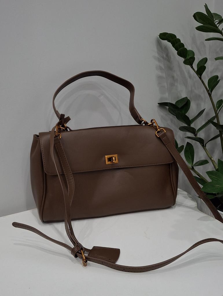 Сумка из искусственной кожи, закос под Balenciaga Rodeo. Сумка выполнена из очень приятного и гладкого материала без шероховатостей, что сразу привлекает внимание. Строчки ровные и аккуратные, что говорит о хорошем качестве пошива. Особенно порадовала медная фурнитура, она отлично смотрится и придаёт изделию стильный вид. Единственный небольшой минус — ножки, защищающие дно сумки, выполнены в оттенке, который не сочетается с основной фурнитурой и немного выбиваются по цвету. Внутри сумки два отделения, одно из которых оснащено небольшим карманом на молнии. Подклад плотный и качественный, что обещает долговечность эксплуатации. В комплекте есть удобный плечевой ремень. Очень удобное решение с застёжкой – сумка закрывается двумя способами, как у оригинальной Balenciaga Rodeo, с поворотными замками: один спереди, другой на внутреннем кармане. Это позволяет закрывать и носить сумку в двух вариантах, в зависимости от настроения и необходимости. ⭐ Продавец упаковал товар в пыльник, пакет и почтовый конверт с пупыркой внутри. ⭐ Трек номер отслеживался до почтового отделения. ⭐ В приложении пришло уведомление о готовности к выдаче заказа. ⭐ Доставка в Петербург заняла 25 дней.