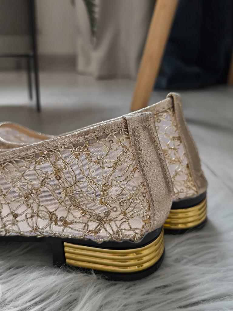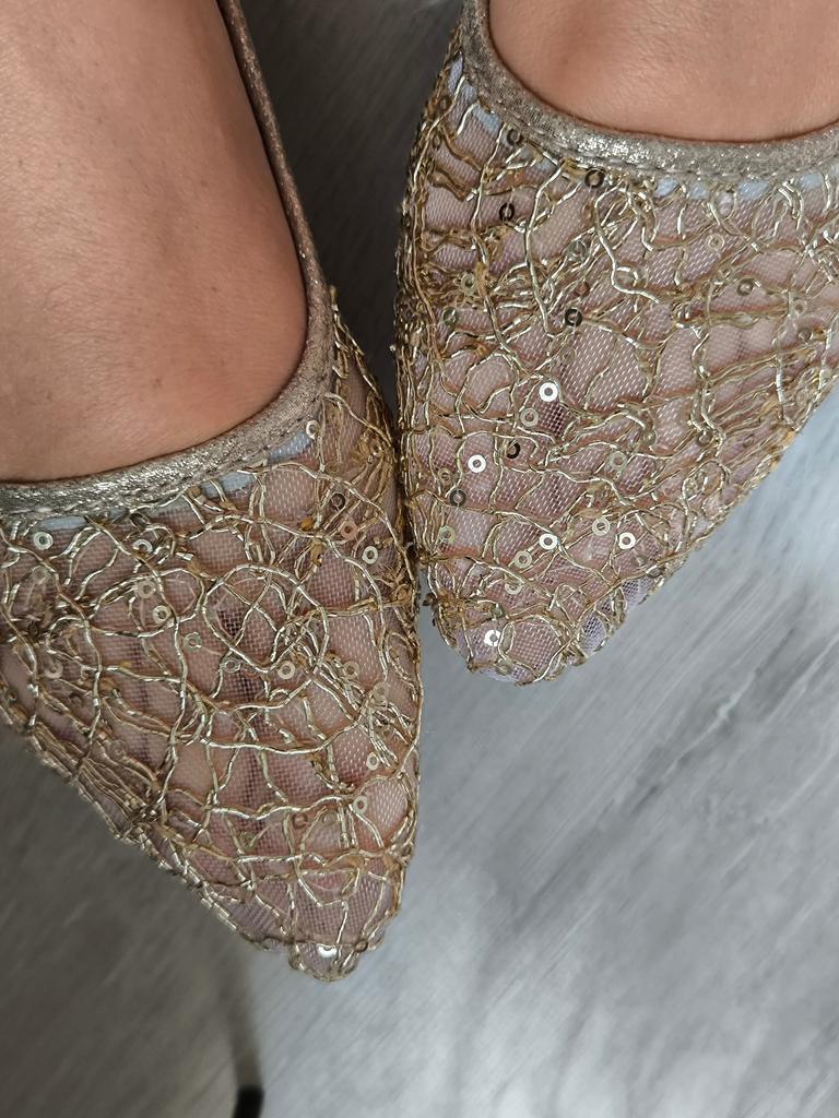 Золотые туфельки ✨ Туфельки себе на бал заказала, только я не Золушка и они мне оказались маловаты. У меня стопа 24,5 см. Размер 39 подойдёт на стопу 23,5-24 см. Красивые, нарядные, на ножках смотрятся чудесно. Рекомендую 🤗